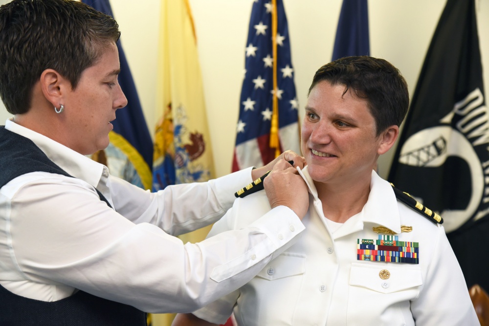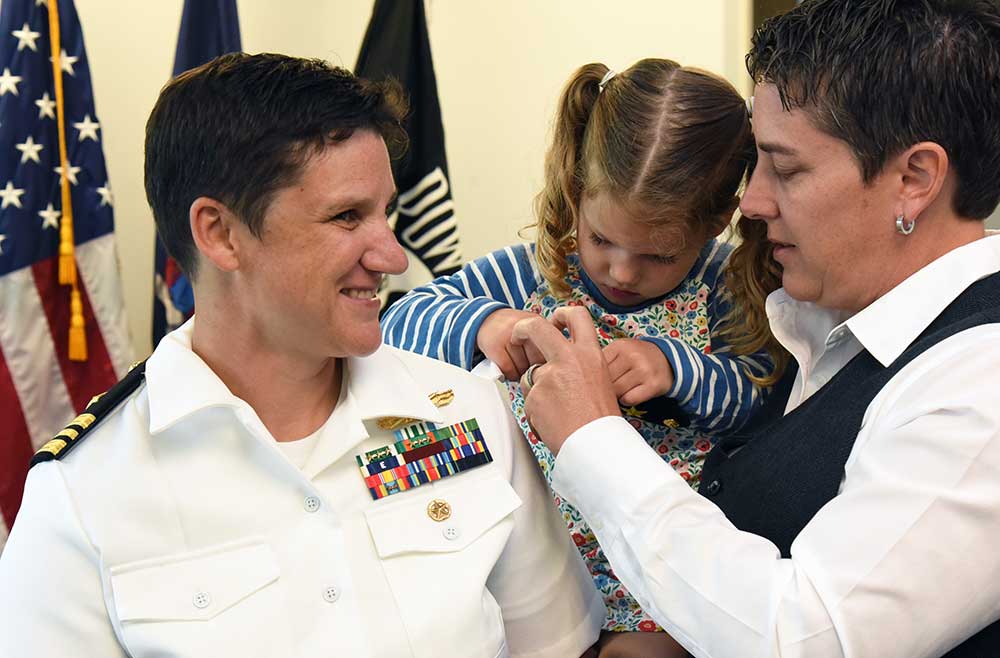 Here’s your feel-good piece for the week: U.S. Navy Commander Penny Glover was recently promoted, and her wife and young daughter helped out at the ceremony. Come see the sweet photos of this dedicated military family!